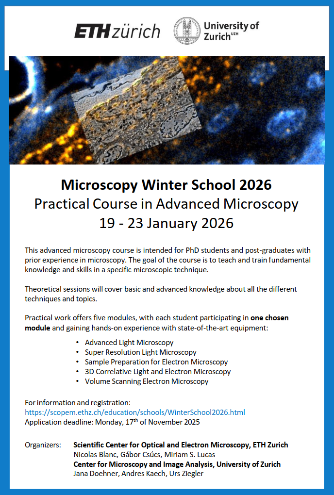 Winterschool 2026 - Practical Course in Advanced Microscopy, 19 -23 January 2026