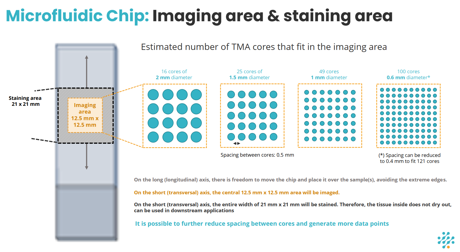 Measured for a 9 mm x 9 mm imaging area: 20 slides/week for 20-plex protein panel ; 12 slides/week for 40-plex protein panel | |